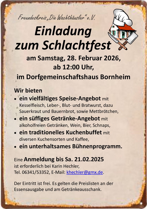 Herzlich willkommen auf der Homepage des Freundeskreises "Die Wachthäusler" e.V. in Bornheim/Pfalz